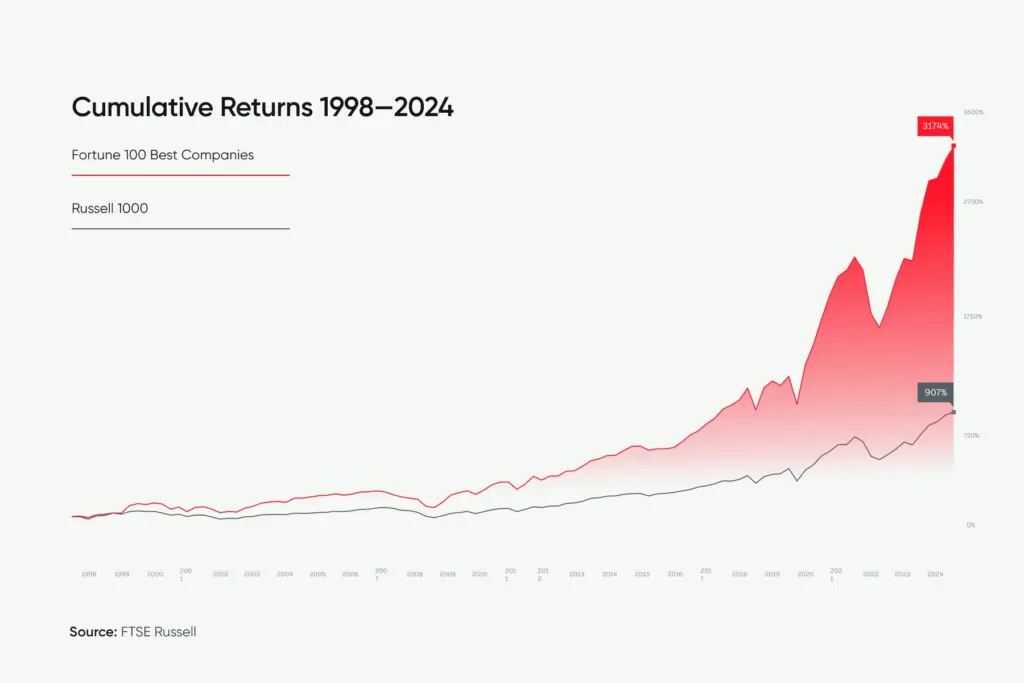Companies listed on the Fortune 100 Best Companies to Work For, compiled by Great Place To Work, outperform the stock market by nearly four times.